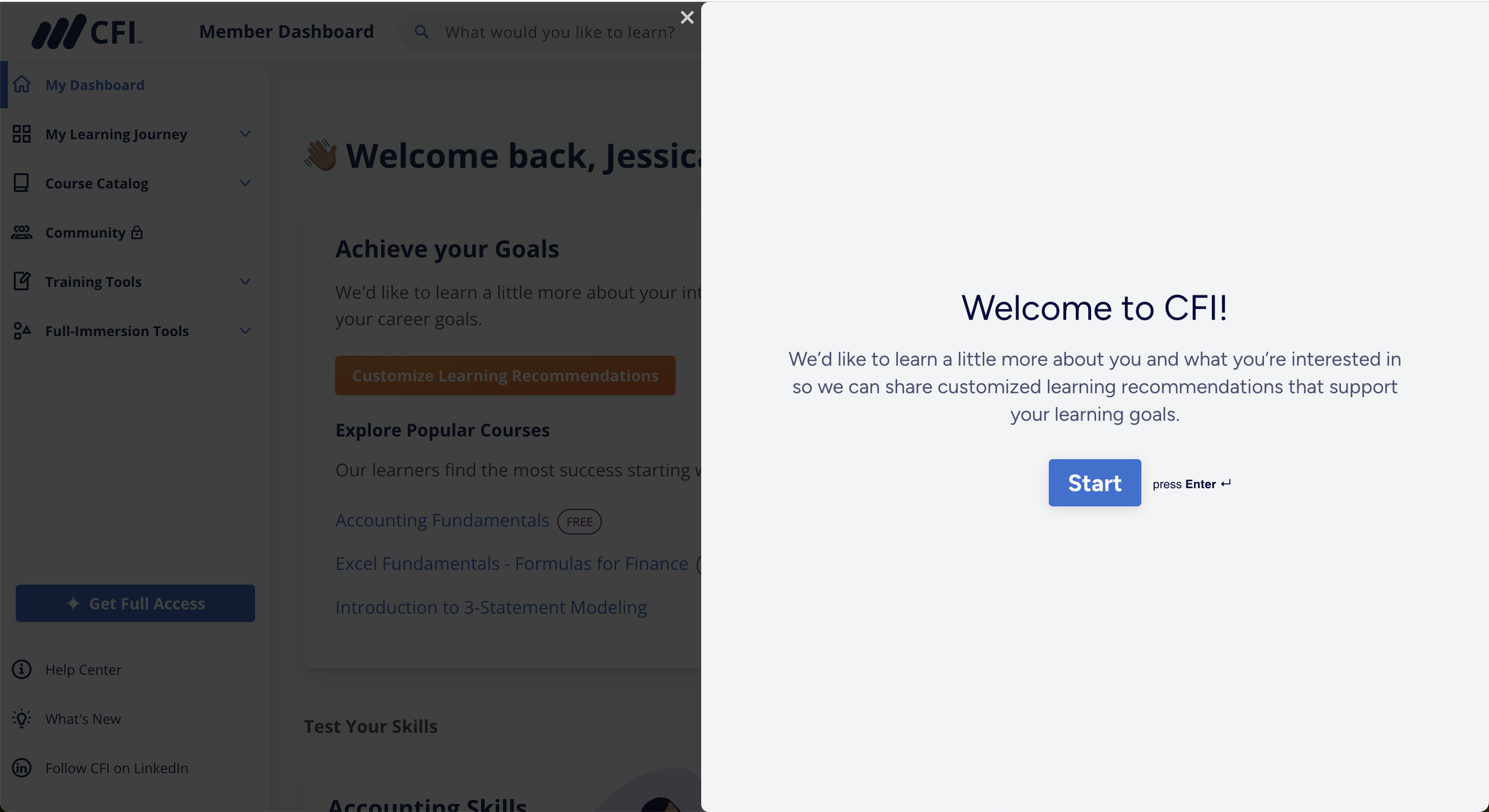 Start their first course. Learners will immediately experience the high quality of CFI’s content and begin to understand the value of a subscription.
