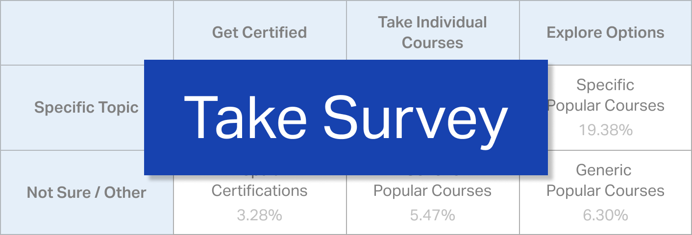 We’ve also listed a few popular courses, the same courses featured in “Recommendation 3: Generic Popular Courses”. If a learner is determined to not take the survey, we still want to provide them with guidance to start their first course.